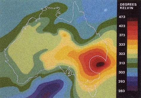 schéma représentant le dégagement de chaleur produit par la chute d'Island Iffish (exprimé en degrés Kelvin)